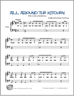 All Around the Kitchen for Easy/Level 2 Piano Solo (2 Pages)