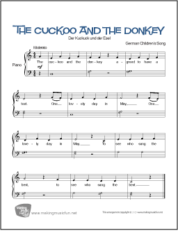 The Cuckoo and the Donkey (German Kids Song) | Beginner/Level 1 Piano Sheet Music (1 Page)