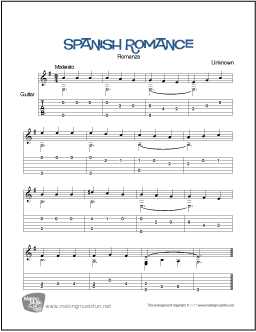 'Spanish Romance' is one of the most popular classical guitar works of the 19th century. Permission granted for instruction, public performance, or just for fun.