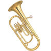 BARITONE - A male voice that is lower than a tenor and higher than a bass. Also, such as the Baritone from the brass family (pictured).