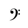 BASS CLEF - This clef tells you that the fourth line of the staff is F. For musical instruments that play low notes. Also called F clef.