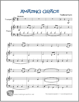 Easy trumpet arrangement of Amazing Grace with piano accompaniment. Permission granted for instruction, public performance, or just for fun.
