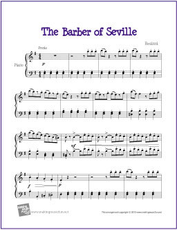 Free printable sheet music for Barber of Seville for Easy/Level 4 Piano Solo. Permission granted for instruction, public performance, or just for fun.