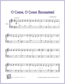 Free printable sheet music for O Come, O Come Emmanuel for Easy Harp Solo. Permission granted for instruction, public performance, or just for fun.
