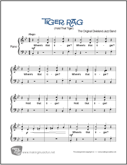 Tiger Rag (Hold That Tiger) for Easy/Level 4 Piano Solo by the Original Dixieland Jazz Band. Permission granted for instruction, public performance, or just for fun.