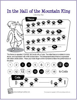 This listening map for In the Hall of the Mountain King from Grieg's Peer Gynt is designed to support listening lessons/activities in the music classroom. This lesson resource is designed to fulfill Standard #6 of the National Standards for Music: listening to, analyzing, and describing music.