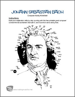 Free Multiplication-Connect-the-Dot Worksheets - Build pre-multiplication skills by skip counting with our free printable famous composer connect-the-dot worksheets. Then grab the crayons! They're a great addition to your composer units.