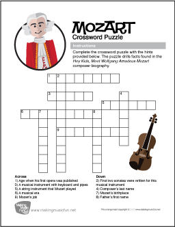 Free Composer Crossword Puzzles - Test your trivia knowledge with our free crossword puzzles. They're a fun way to drill the facts found in our Hey Kids, Meet the Composer biographies - turning review time into a challenge that helps every fact stick.